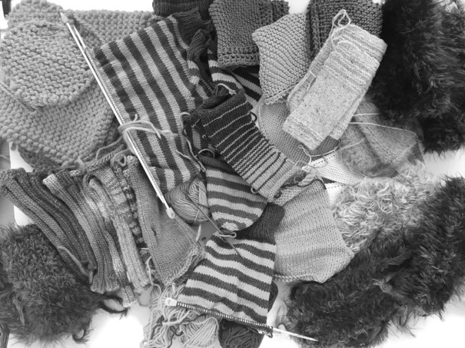 I pulled out a whole host of unfinished knitting projects. If and when I finish them I’ll colour in the image!